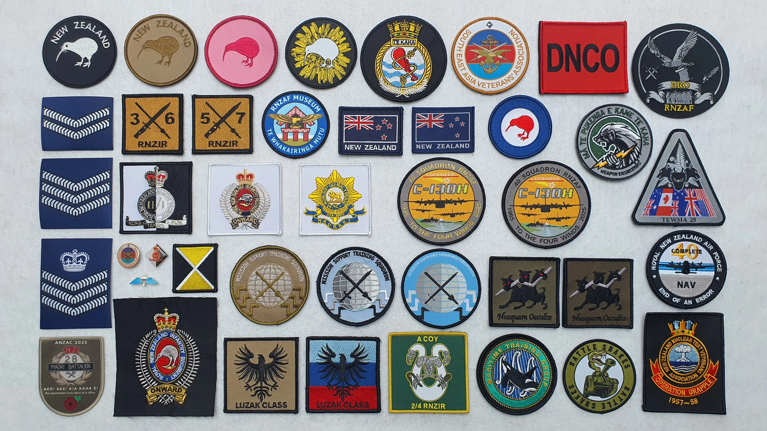 Anzac Day ATC & Cadets Businesses Charities Clubs and Community Groups Emergency Services Events Flags Girl Guides Government Departments Heraldry Martial Arts Military Motorcycle New Zealand badges Schools Scouts Security Sports Tourist Youth Groups